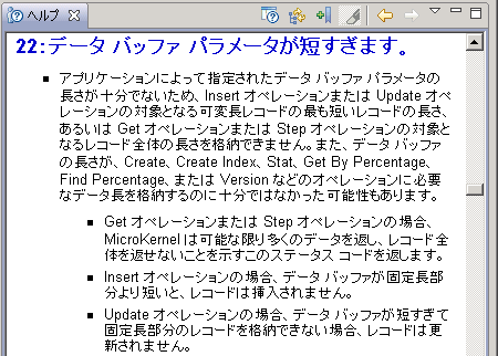 ![]() | ステータス コードにマウス カーソルを移動すると、そのステータスについての説明と、原因となったオペレーションが表示されます。これらのステータス コードのヘルプ全体を表示するには、赤色で表示されている部分をクリックします。詳細については、ステータス コードのヘルプを見るにはを参照してください。 |