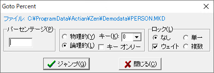[GetExt]メニュー | 以下の Btrieve オペレーションが実行できます。 • Goto Percent • Get Position • Find Percent | |