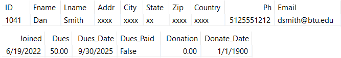 ('1041','Dan','Smith','123 Main','Austin','TX','78701','USA','5125551212',