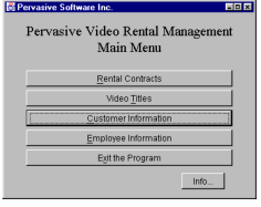 Zen ビデオ店サンプル アプリケーションの Java ソース ファイルは、.jar ファイルに格納されています。これらのファイルを抽出して、Btrieve テーブルに接続する Zen Java インターフェイスの実例を得ることができます。