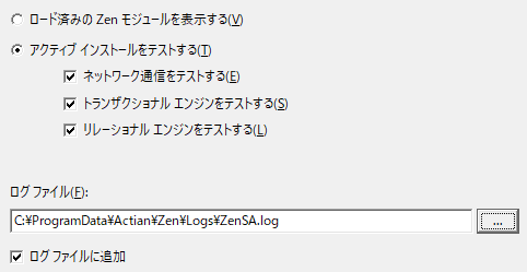 ログ ファイルに現在の ZenSA セッションに関する情報のみを含めたい場合は、[ログ ファイルに追加]チェック ボックスをオフにします。