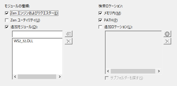 [メモリ内]を選択すると、Zen コンポーネントがどのロケーション(PATH 内またはほかの指定したロケーション)にあるかに関わらず、ZenSA はメモリ内にロードされているすべての Zen コンポーネントを検索します。
