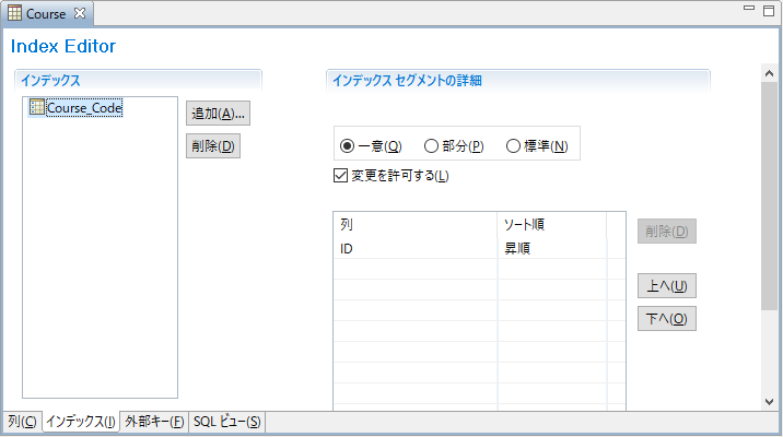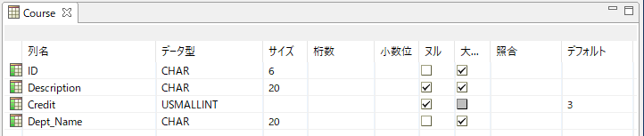 完了]をクリックします。Zen Control Center に列エディターのペインが表示されます。このペインを使用して、Course テーブルの列を作成および構成します。