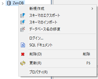 ZenCC でデータベースを削除するには、削除したいデータベースを右クリックして[削除]を選択します。