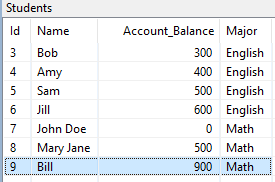 c.execute("INSERT INTO Students(Name, Account_Balance) VALUES ('Bill', 800)")