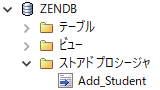 これにより、Actian Zen データベースに新しいプロシージャ Add_Student が作成されます。このプロシージャをいつでも実行して、新しい学生を追加できます。これは Zen Control Center の[ストアド プロシージャ]の下に表示されます。
