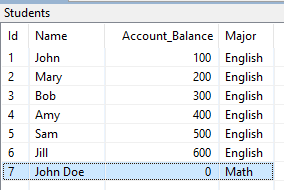 もう一度 Students テーブルを見ると、新しいレコードが挿入されたことがわかります。