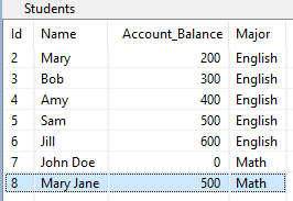 INSERT INTO Students(Name, Account_Balance) \