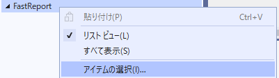 - ツールボックスに[FastReport .NET]タブがある場合はこれを削除します。