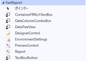 これで、選択したタブには以下の FastReport .NET コンポーネントが表示されます。