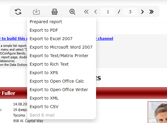 この後、WebReport.Toolbar.Exports.ShowEmailExport オプションをアクティブにすると、ユーザーが電子メールでレポートを送信できるようになります。