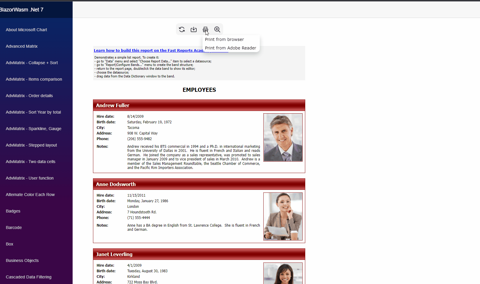 Blazor WebAssembly からレポートを直接印刷できるようになりました。