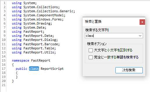 FastReport WPF および FastReport Mono コード エディターでのテキスト検索