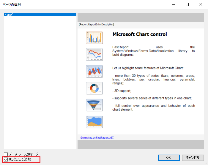 リンクによるレポート ページの追加