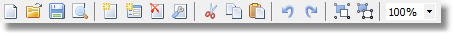 モード ツール バーは、デザイナー ウィンドウの左端にあるオブジェクト ツール バーと統合されています。次のボタンがあります。