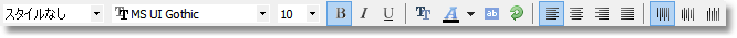 | スタイルなし | スタイル | 選択されたテキスト オブジェクトのスタイルを表示します。オブジェクトのスタイルは、ドロップダウン リストから選択して変更できます。スタイルの定義は[レポート]>[スタイル]メニューから行います。 |